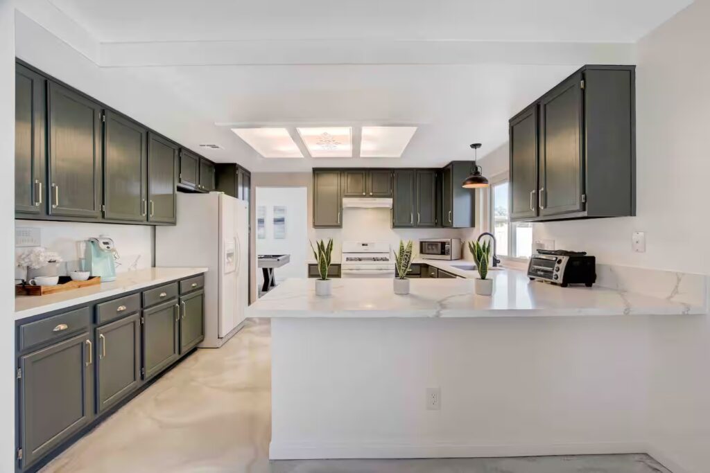 ๐ช Fully equipped kitchen with dishwasher, refrigerator, stove/oven, microwave, pots/pans, dishes, glassware, plasticware and barware