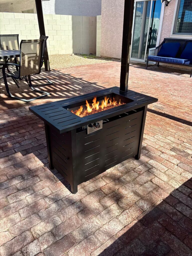 ๐ฟ Outdoor Space: Large covered patio with seating area, dining set, benches, BBQ grill and firepit